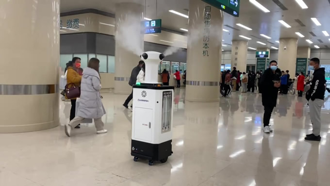 消毒機器人什么場合作用大,大型公共場所使用消毒機器人進行消毒