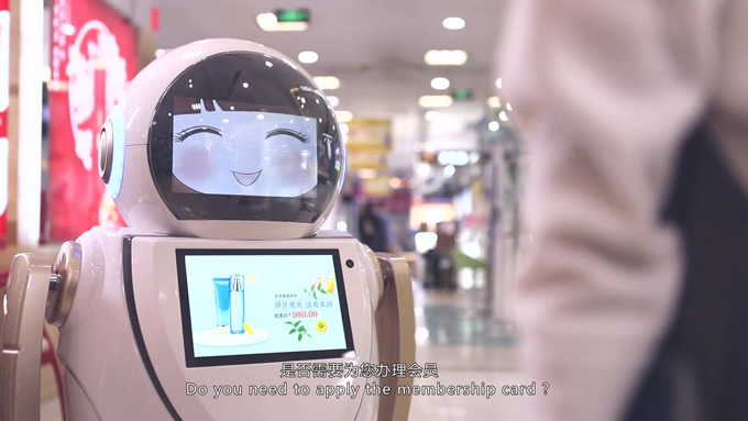 會(huì)說(shuō)英文的迎賓機(jī)器人