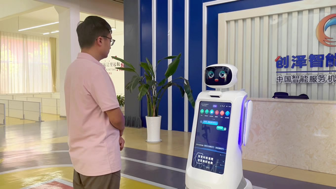 創(chuàng)澤智能消毒機器人和智能大屏機器人等多款機器人亮相蘭洽會,彰顯了創(chuàng)澤AI技術實力與場景深耕能力