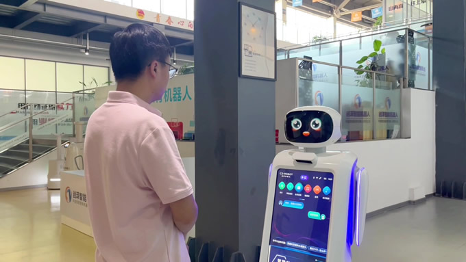 創(chuàng)澤智能消毒機器人和智能大屏機器人等多款機器人亮相蘭洽會,彰顯了創(chuàng)澤AI技術(shù)實力與場景深耕能力