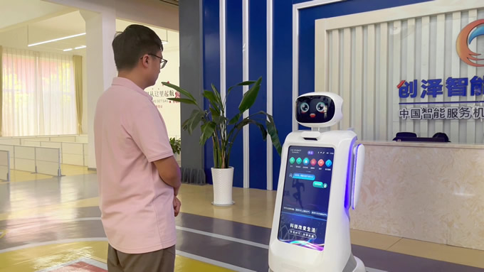 創(chuàng)澤智能消毒機器人和智能大屏機器人等多款機器人亮相蘭洽會,彰顯了創(chuàng)澤AI技術(shù)實力與場景深耕能力