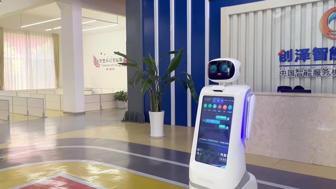 創(chuàng)澤智能消毒機器人和智能大屏機器人等多款機器人亮相蘭洽會,彰顯了創(chuàng)澤AI技術實力與場景深耕能力