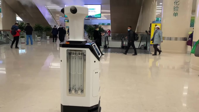消毒機器人什么場合作用大,大型公共場所使用消毒機器人進行消毒