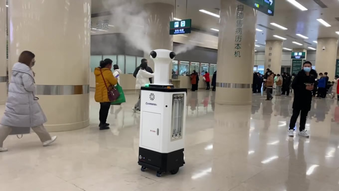 張掖全自動智能醫(yī)用消毒機器人投入使用