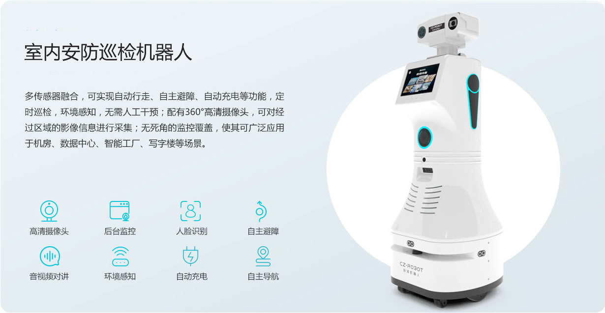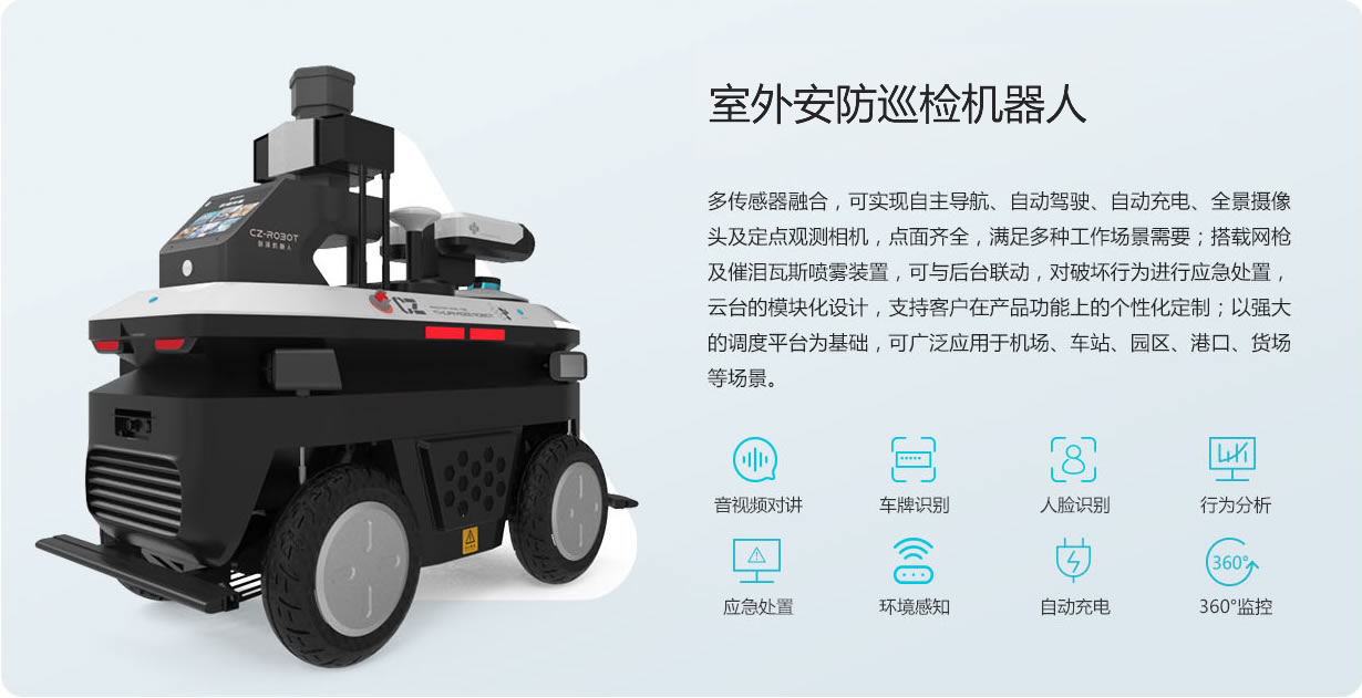 | 智能安防巡檢機(jī)器人是基于“人工智能+”設(shè)計(jì)開發(fā)的智能機(jī)器人平臺(tái),集機(jī)器人視覺(jué) 系統(tǒng)、音視頻數(shù)據(jù)采集、消防和安防、無(wú)人駕駛技術(shù)于一體,搭載360°紅外攝像、超聲波雷達(dá)、雙目視覺(jué)攝像頭、網(wǎng)槍、催淚瓦斯噴射器、水炮、干粉滅火器等設(shè)備,基于輪式小車 實(shí)現(xiàn)全天候自動(dòng)巡邏,360度聲音圖像同步回傳,自動(dòng)躲避行人及障礙物。支持快速行走功 能,當(dāng)發(fā)生異常時(shí),可實(shí)現(xiàn)快速部署及現(xiàn)場(chǎng)支援,為用戶提供智能安全服務(wù),是社區(qū)、學(xué)校 等公共場(chǎng)所人民群眾的保護(hù)神! |