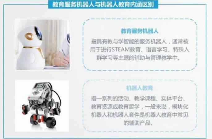 機(jī)器人教育:指一系列的活動(dòng)、教學(xué)課程、實(shí)體平臺(tái)、 教育資源或教育哲學(xué),一般來(lái)說(shuō),模塊化機(jī)器人和機(jī)器人套件是機(jī)器人教育中常見(jiàn) 的輔助產(chǎn)品。
