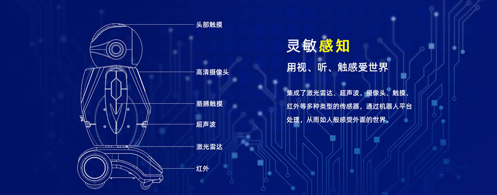 指引機(jī)器人凝聚了國內(nèi)外D人工智能團(tuán)隊先進(jìn)的科研成果,釆用擬人化設(shè)計, 是擁有視覺、觸覺、聽覺的個性化情感智能服務(wù)機(jī)器人,通過了機(jī)器人檢 測與評定中心EMC和安全雙資質(zhì)認(rèn)證,是國內(nèi)早通過該雙資質(zhì)認(rèn)證的四款 機(jī)器人之一,獲PICC千萬元質(zhì)量承保,斬獲了有“科技界諾貝爾獎”之稱的CES 創(chuàng)新獎。