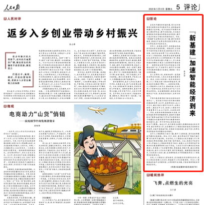 5月22日公布的中國政府工作報告中,首次出現(xiàn)了“新基建”這一概念,“新基建”將對激發(fā)中國新消費需求、助力產業(yè)升級產生重要作用,這片“新藍!敝档闷诖
