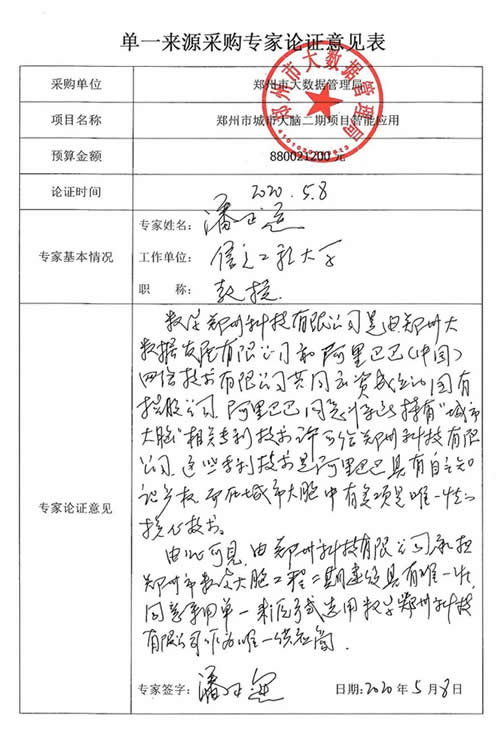 經(jīng)專家論證,認(rèn)為本次采購屬于只能從供應(yīng)商處采購 情形,我單位擬采用單一來源采購方式選用數(shù)字鄭州科技有限公司作為供應(yīng)商。