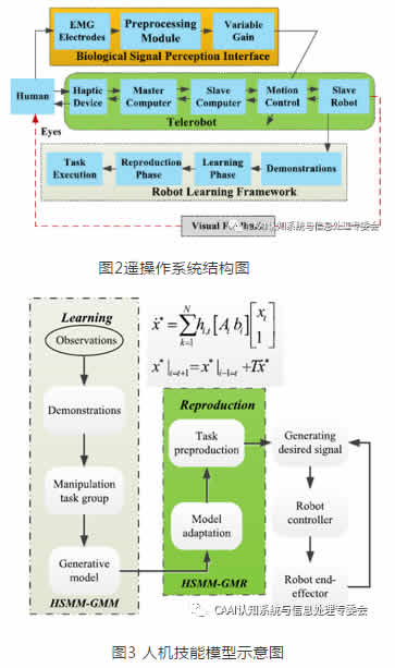 本文提出了一種新型的觸覺肌電感知機(jī)制和基于隱半馬爾科夫模型-G斯混合理論的機(jī)器人學(xué)習(xí)框架。操作者通過調(diào)節(jié)自身的肌肉活性來應(yīng)對外界環(huán)境的變化,同時(shí)觀察和記錄人機(jī)協(xié)作過程中的肌肉活動情況。利用采集的肌電信號和提出的任務(wù)學(xué)習(xí)框架,遙操作機(jī)器人系統(tǒng)可以自然地與外界環(huán)境進(jìn)行交互、編碼人機(jī)協(xié)作任務(wù)和生成任務(wù)模型,從而提升系統(tǒng)的類人化操作行為和智能化程度。