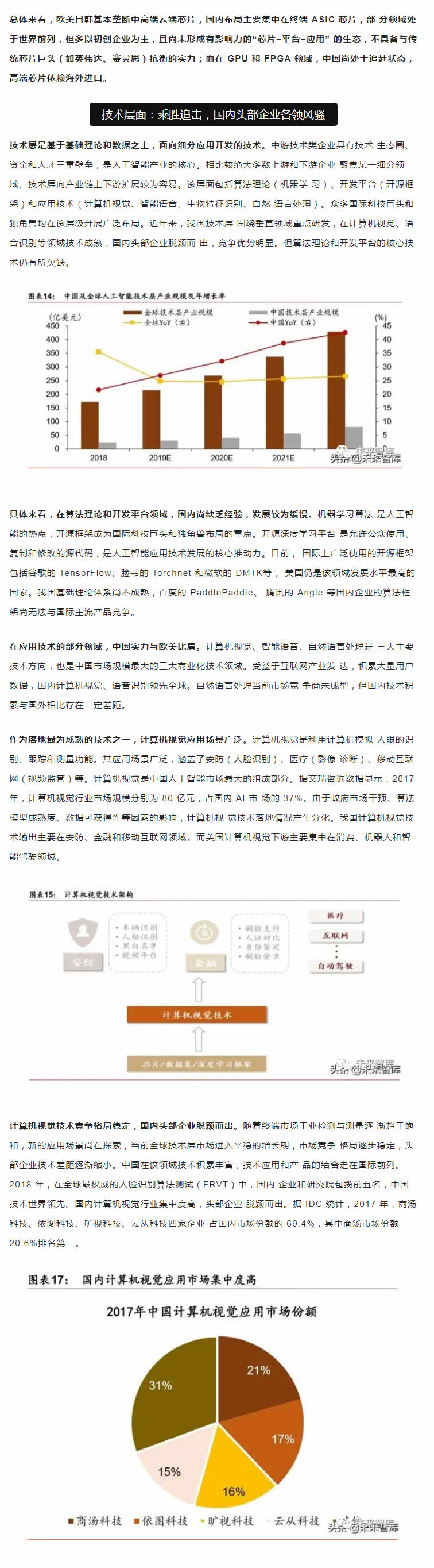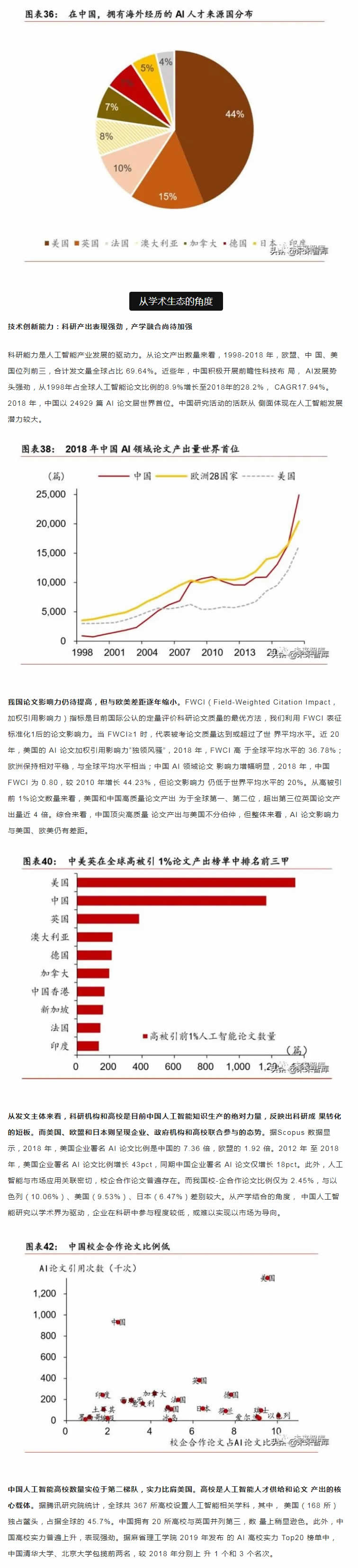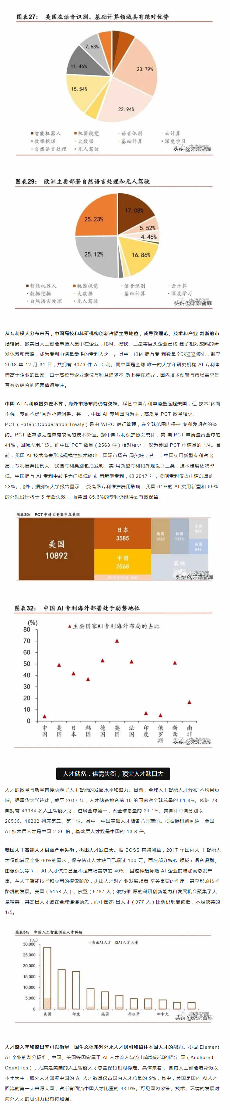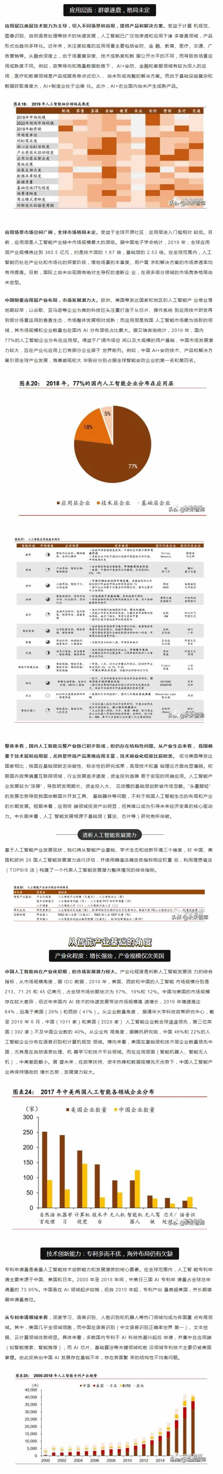 從中短期看,技術(shù)優(yōu)化、落地場景的開拓和滲透是是主要的增長點(diǎn);從長期看,智能生 態(tài)體系建設(shè)才是彎道超車的必由之路。人工智能產(chǎn)業(yè)的核心競爭力在于生態(tài)體系的建設(shè), 包括大數(shù)據(jù)、算法理論、底層技術(shù)、應(yīng)用生態(tài)、人才儲備等層面。而我國人工智能產(chǎn)業(yè)生 態(tài)和基礎(chǔ)設(shè)施建設(shè)正處于探索期,如何實(shí)現(xiàn)核心技術(shù)的突破和拓寬人工智能技術(shù)與社會經(jīng) 濟(jì)融合場景著力點(diǎn)在于人才儲備和持續(xù)的研發(fā)投入。從人才的角度,收窄技術(shù)差距的根本 在于優(yōu)化人的知識結(jié)構(gòu)和能力。當(dāng)前政策應(yīng)側(cè)重建立人才培養(yǎng)體系,為人工智能打造人才 資源池,尤其是在基礎(chǔ)學(xué)科L域突破人才瓶頸。同時,打破“唯數(shù)量論”的科研評價和考 核體系,改變?nèi)瞬偶顧C(jī)制勢在必行。我國人工智能專利申請和科研產(chǎn)出數(shù)量L先, 但質(zhì)量堪憂。唯有從源頭改變評價機(jī)制,才能扭轉(zhuǎn)“量多而質(zhì)優(yōu)”的問題。從研發(fā)的角度, 企業(yè)技術(shù)優(yōu)化和創(chuàng)新能力是解決產(chǎn)業(yè)痛點(diǎn)的關(guān)鍵;A(chǔ)研究的投入周期長、不確定性大、 和風(fēng)險G特點(diǎn)決定了其難以短期內(nèi)獲得投資回報,但基礎(chǔ)L域的突破將為經(jīng)濟(jì)帶來長期和 廣泛的溢出效應(yīng),因此,國內(nèi)更應(yīng)關(guān)注底層技術(shù)的研發(fā)投入,扭轉(zhuǎn)傳統(tǒng)技術(shù)路徑,顛覆核 心技術(shù)受制于人的被動局面。此外,人工智能在賦能機(jī)器模擬人類進(jìn)行決策的同時產(chǎn)生的 倫理道德、隱私保護(hù)和社會安全問題值得關(guān)注。由于法律法規(guī)存在滯后性,尚無法對人工 智能技術(shù)進(jìn)行有效監(jiān)管。我國應(yīng)加快人工智能倫理研究,及早識別人工智能治理風(fēng)險。