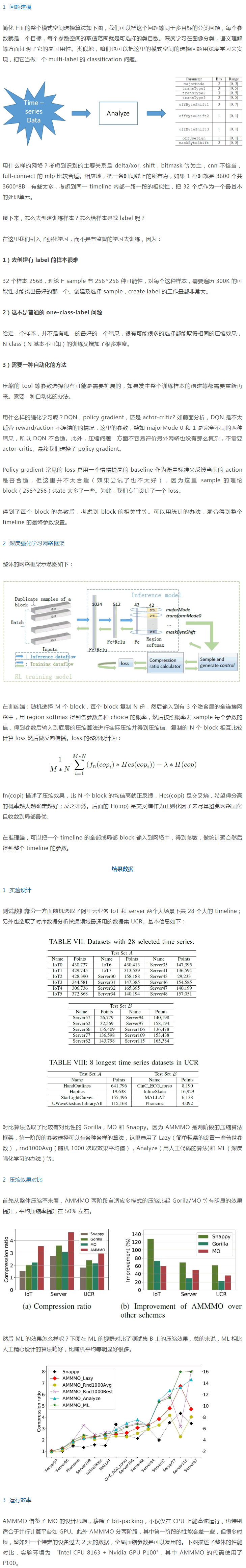 深度學(xué)習(xí)的本質(zhì)是做決策,用它解決具體的問題時(shí)很重要的是找到契合點(diǎn),合理建模,然后整理數(shù)據(jù)優(yōu)化 loss 等終較好地解決問題。在過去的一段時(shí)間,我們在用深度強(qiáng)化學(xué)習(xí)進(jìn)行數(shù)據(jù)壓縮上做了一些研究探索并取得了一些成績,已經(jīng)在 ICDE 2020 research track 發(fā)表(Two-level Data Compression using Machine Learning in Time Series Database)并做了口頭匯報(bào)。在這里做一個(gè)整體粗略介紹,希望對其它的場景,至少是其它數(shù)據(jù)的壓縮等,帶來一點(diǎn)借鑒作用。