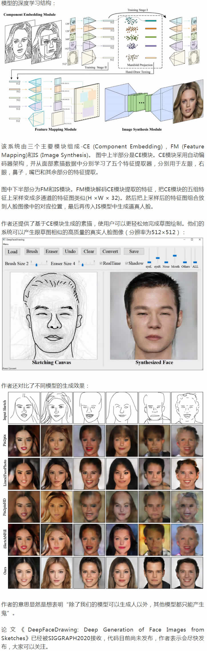中國科學院和香港城市大學的一組研究人員介紹了一種local-to-global的方法,可以從簡單的草圖生成逼真的人臉。