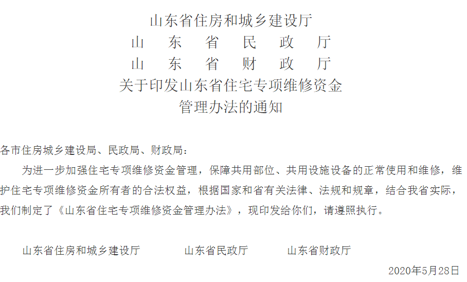 D一條 為了加強(qiáng)對(duì)住宅專項(xiàng)維修資金(以下簡(jiǎn)稱維修資金)的管理,保障住宅共用部位、共用設(shè)施設(shè)備的正常使用和維修,維護(hù)維修資金所有者的合法權(quán)益,根據(jù)《中華人民共和國(guó)物權(quán)法》《物業(yè)管理?xiàng)l例》《山東省物業(yè)管理?xiàng)l例》《住宅專項(xiàng)維修資金管理辦法》等法律、法規(guī)和規(guī)章的規(guī)定,結(jié)合本省實(shí)際,制定本辦法。