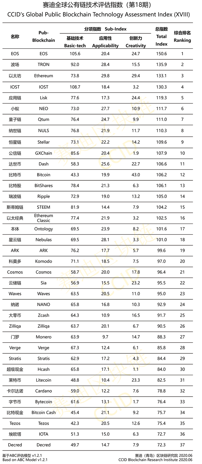2020年6月18日,中國(guó)電子信息產(chǎn)業(yè)發(fā)展研究院(賽迪研究院)發(fā)布第18期賽迪公有鏈技術(shù)評(píng)估指數(shù),對(duì)37條知名公有鏈從技術(shù)維度進(jìn)行綜合考量并給出排名。