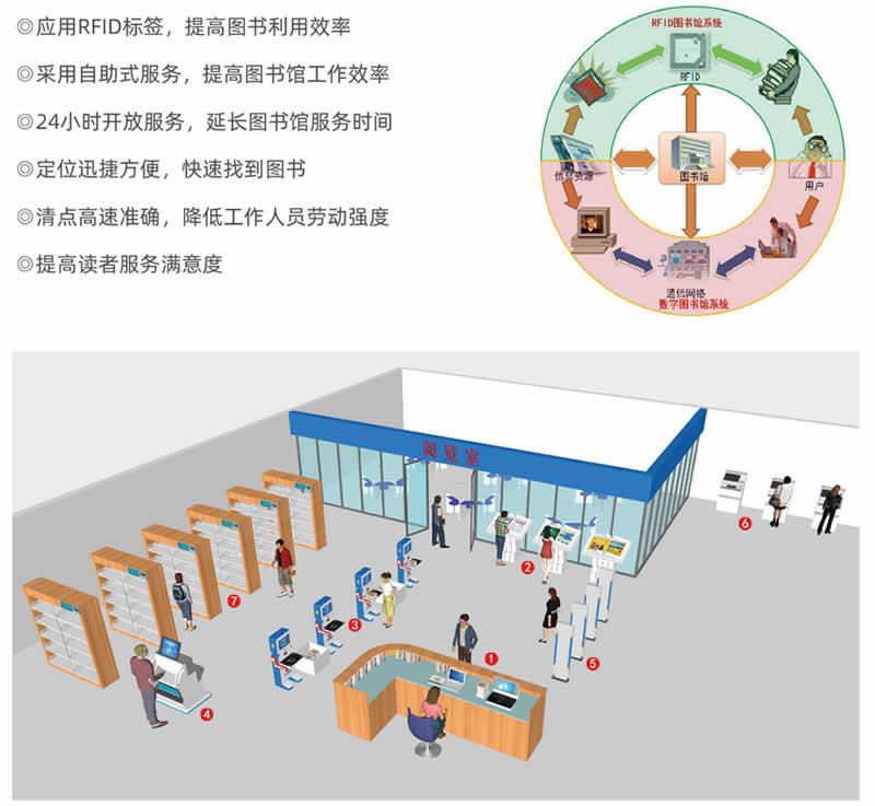 對于一個現(xiàn)代化管理的圖書館來說,從某種意義上講,如何減少人員的浪費(fèi),如何提G效率、 是G服務(wù)水平是個有待解決的問題。因此,如何結(jié)合的計算機(jī)及相關(guān)應(yīng)用技術(shù),幫助圖書館改善現(xiàn)狀,提G圖書館的智能化管理,成為國內(nèi)外圖書館關(guān)注的一個焦點問題。目前,創(chuàng)澤RFID系統(tǒng)可以解決以上圖書館所面臨的問題,既可以讓圖書館工作人員更輕松的進(jìn)行盤點、歸架、順架工作,減少他們的工作強(qiáng)度,增加工作效率的同時,又可以讓讀者更輕松快速的完成借閱,同時還具備出色的防盜功能,更有效的減少圖書館的失竊率。
