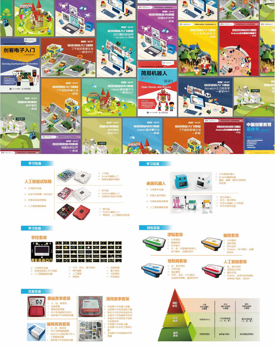 主要分為基礎裝備、訓練裝備和競賽裝備。基礎裝備主要服務于大班教學,主要進行人工智能編程基礎課程開展,訓練裝備主要服務于主題式集中訓練,而競賽裝備主要用于開展各類人工智能競賽。