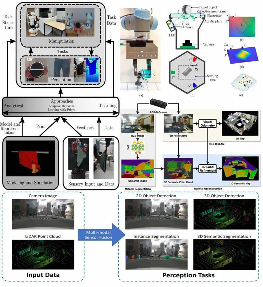 2 多模態(tài)信息融合可克服單一傳感器存在的局限性,提供更多面、魯棒的信息,有助于在機(jī)器人導(dǎo)航、人機(jī)交互、環(huán)境監(jiān)測、自動(dòng)駕駛等取得更好性能;同時(shí),面臨傳感器不一致性、數(shù)據(jù)同步、信息不完整等挑戰(zhàn)。