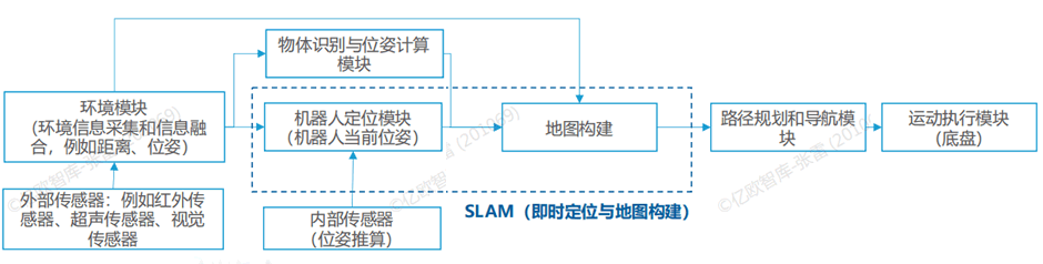 環(huán)境感知模塊的基礎(chǔ)硬件是各類不同的傳感器,他們充當(dāng)了機(jī)器人的五官,收集不同的測(cè)量信息;SLAM算法(Simultaneous Localization