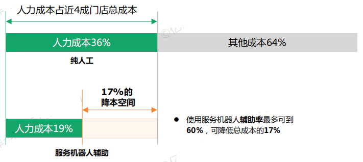 服務(wù)機器人可以使人工成本降低50%左右;酒店場景中服務(wù)機器人便于給客戶打造私密空間;旅游場景中服務(wù)機器人可以給出完全透明且準確的信息
