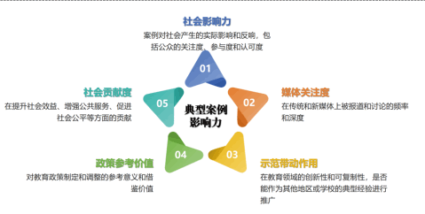 長三角教育現(xiàn)代化典型案例影響力是指在長三角地區(qū)推進(jìn)教育現(xiàn)代化過程中,某一具體案例對社會、教育體系、政策制定、媒體傳播以及社會效益等多個方面產(chǎn)生的綜合性、可衡量的積J作用和示范效果。具體包含社會影響力、媒體關(guān)注度、示范帶動作用、政策參考價(jià)值以及社會貢獻(xiàn)度等5個維度。