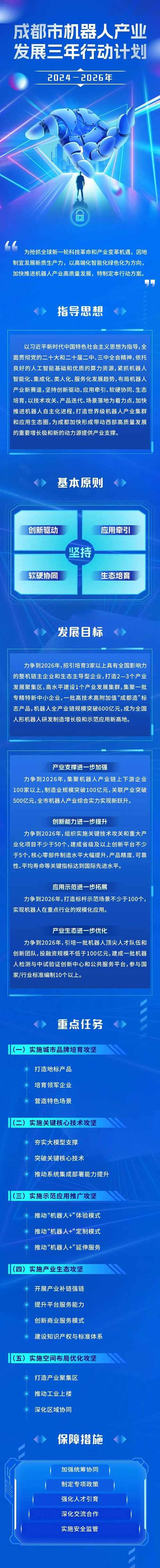 機(jī)器人產(chǎn)業(yè)正迎來發(fā)展風(fēng)口。15日舉行的成都市機(jī)器人進(jìn)世園會(huì)活動(dòng)上,成都市經(jīng)信局市新經(jīng)濟(jì)委正式發(fā)布《成都市機(jī)器人產(chǎn)業(yè)發(fā)展三年行動(dòng)計(jì)劃(2024—2026年)》,其明確指出,力爭(zhēng)到2026年,全市機(jī)器人產(chǎn)業(yè)創(chuàng)新能力顯著提升,打造100款機(jī)器人新品、聚集100家產(chǎn)業(yè)鏈上下游企業(yè)、打造100個(gè)標(biāo)桿示范場(chǎng)景,全產(chǎn)業(yè)鏈規(guī)模突破600億元,建成全國(guó)人形機(jī)器人研發(fā)制造增長(zhǎng)J和示范應(yīng)用新G地。