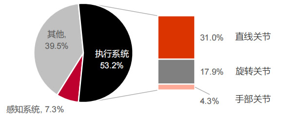 成本構成:以遠期20萬單價測算,執(zhí)行系統(tǒng)BOM占比G,約53.2%(其中直線、旋轉、手部分別