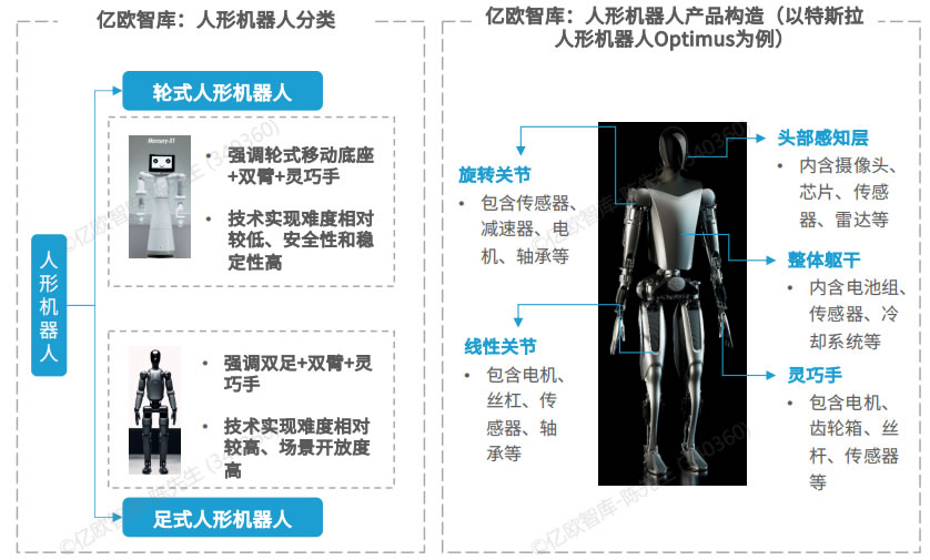 目前人形機(jī)器人并沒(méi)有統(tǒng)—標(biāo)準(zhǔn)定義,根研《Humanoid Robots》 的歸納,人形機(jī)器人應(yīng)當(dāng)能“在人工作和居住的環(huán)境工作,操作為人設(shè) 計(jì)的工具和設(shè)備,與人交流”。在此前提下, 人形機(jī)器人終應(yīng)具有與人類似的身體結(jié)構(gòu)和運(yùn)動(dòng)方式,并具備—定自助感知、學(xué)習(xí)和決策能力, 目前市面上的人形機(jī)器人通常身G在1.3米到1.8米之間,可分為足式機(jī)器人與輪式機(jī)器人。