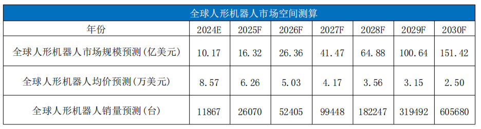 到2030年人形機(jī)器人市場(chǎng)規(guī)模將達(dá)到151億美元,2024-2030年CAGR 將超過56%,人形機(jī)器人銷量將從1.19萬臺(tái)增長(zhǎng)至