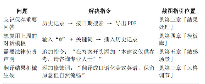 5)問題應(yīng)對方案:遇到回答錯(cuò)誤、響應(yīng)慢、功能使用問題,可按分類采取相應(yīng)解決措施。要注意保護(hù)安全隱私,避免危險(xiǎn)行為,利用隱私保護(hù)機(jī)制和敏感場景處理方法保障信息安全。若出現(xiàn)問題,可借助官方診斷工具、社區(qū)互助資源和客服溝通解決 。