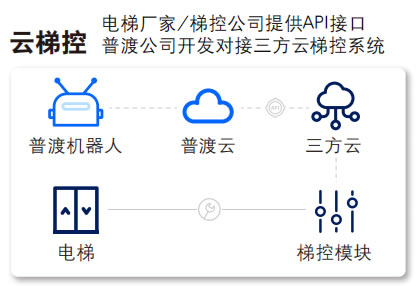 云梯控通過(guò)云端API接口與電梯控制系統(tǒng)進(jìn)行 數(shù)據(jù)交互。服務(wù)機(jī)器人可以通過(guò)網(wǎng)絡(luò)訪問(wèn)電 梯操作系統(tǒng),而無(wú)需對(duì)電梯進(jìn)行任何硬件改 造。這一過(guò)程依賴(lài)于云計(jì)算平臺(tái)的實(shí)時(shí)處理 和數(shù)據(jù)分析能力。云梯控的優(yōu)勢(shì)在于不需要 改造電梯,通過(guò)API接口實(shí)現(xiàn)機(jī)器人乘梯;兼 容性G,可以供不同類(lèi)型的服務(wù)機(jī)器人在同 一個(gè)場(chǎng)景共同乘梯 ;功能實(shí)現(xiàn)靈活,可通過(guò) 電梯接口去實(shí)現(xiàn)不同乘梯需求。