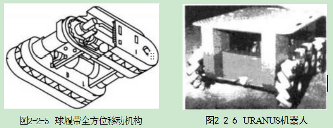 1992年,日本神戶制鋼所的西川晃平等人研制了一種球履帶全方位移動(dòng)機(jī) 構(gòu)3-11.123,結(jié)構(gòu)示意圖見圖2-2-5。該全方位移動(dòng)機(jī)構(gòu)有兩條履帶,每個(gè)履帶內(nèi)平 行放置兩條桿,分別由直流伺服電機(jī)通過履帶驅(qū)動(dòng),而每條履帶內(nèi)各自分別放入2個(gè)橡膠球,通過兩條履帶的運(yùn)動(dòng)組合及球的轉(zhuǎn)動(dòng)即可實(shí)現(xiàn)全方位移動(dòng)功能。
