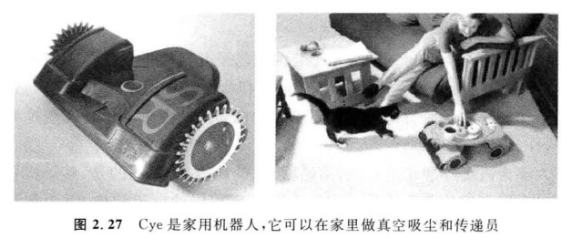 令人驚奇的是,靜態(tài)穩(wěn)定所要求的Z小輪子數(shù)目是2個。如上所述,如果質(zhì)心在輪軸下面, 一個兩輪差動驅(qū)動的機器人可以實現(xiàn)靜態(tài)穩(wěn)定。 Cye 就是使用這種輪子 結(jié)構(gòu)的商業(yè)移動機器人(圖2.27)。