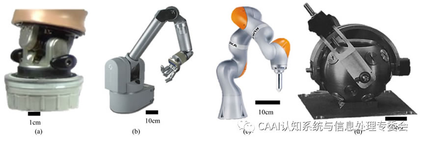 圖3 三自由度手腕 (a) MC MultiFlex(RU) (b) Barrett W AM Arm (RRR) (c) Kuka LBR iiwa (RRR) (d) Chirikjian球形步進電機(S)