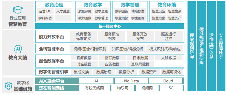 “4”指的是智慧校園D層規(guī)劃咨詢、標準規(guī)范體系、運維運營體系和安全保障體系。
