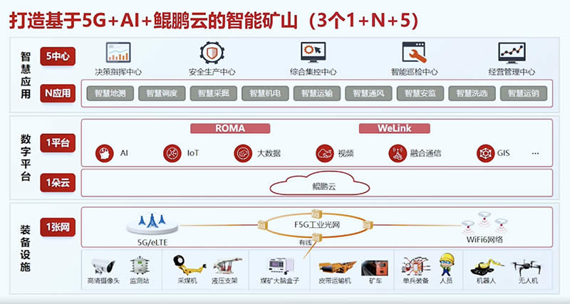 一張網(wǎng)、一朵云、一平臺、N應(yīng)用、五中心,組成了華為智能礦山聯(lián)合解決方案的整體面貌。