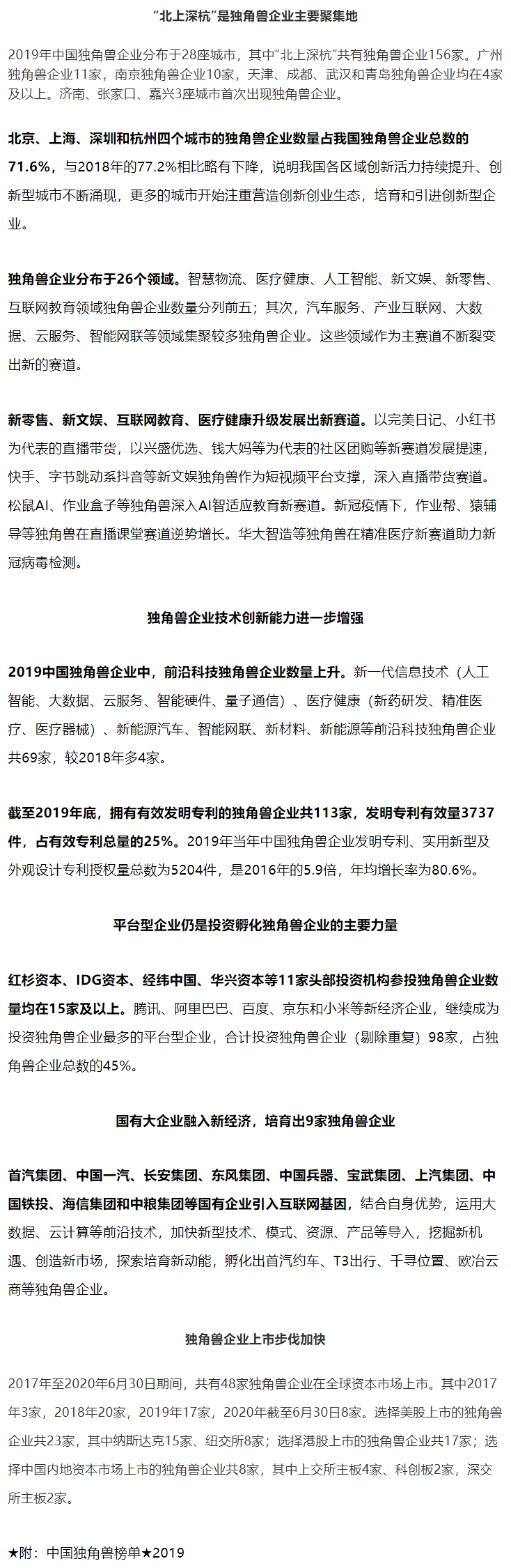 截至2020年6月30日,15家為2020年新晉獨(dú)角獸企業(yè)。