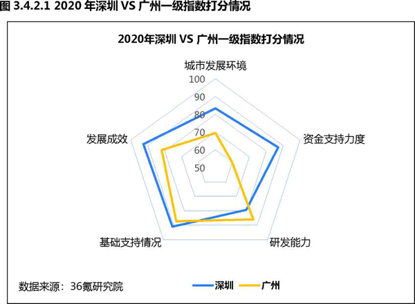 深圳人工智能發(fā)展總指數(shù)得分為86.52分,廣州得分77.74分,分別占據(jù)全 國人工智能發(fā)展城市第三位和第六位。雖然深圳有深圳大學(xué)、南方科技大學(xué)等G校 資源,但廣州整體研發(fā)能力更勝一籌,杰出人才總量、論文產(chǎn)出數(shù)量均相對L先。 雖然廣州研發(fā)能力較強,但整體實力上與深圳相比還存在一定差距,尤其是城市發(fā) 展環(huán)境、資金支持力度和發(fā)展成效上均不及深圳。