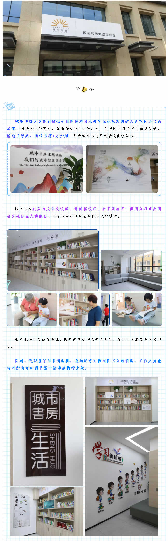 城市書房萬達(dá)廣場館位于日照萬達(dá)廣場二樓,總面積280平方米,擁有圖書10000冊,設(shè)有閱覽桌椅45個,配有自助辦證服務(wù)終端、自助借還服務(wù)終端、圖書殺菌機(jī)、自沉式還書箱、查詢一體機(jī)等服務(wù)設(shè)備,方便讀者進(jìn)行閱讀