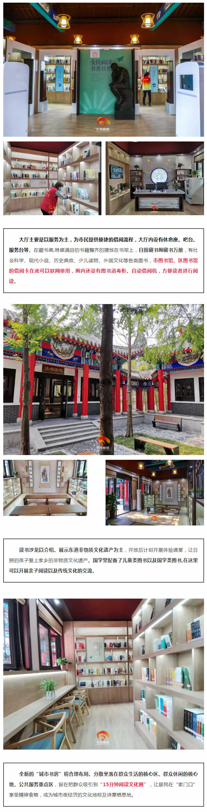 從城市書房的正門進(jìn)入,一眼就被城市書房的建筑造型所吸引。這里采用四合院院落布局設(shè)計(jì),建筑造型均采用古建筑的設(shè)計(jì)風(fēng)格,J具傳統(tǒng)特色。走入書房?jī)?nèi)部,這里分為服務(wù)大廳、藏書閣、讀書沙龍、國(guó)學(xué)堂幾大區(qū)域,庭院中綠樹成蔭,設(shè)有座椅供市民休憩,營(yíng)造出了濃濃的文化和藝術(shù)氛圍。