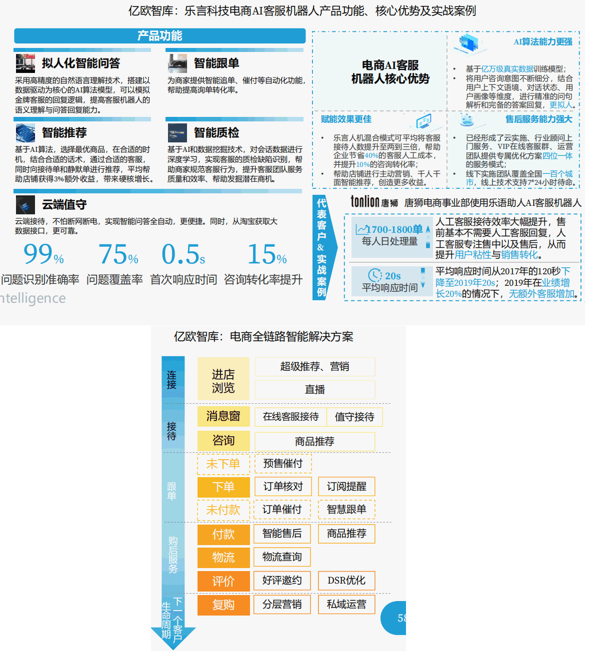 在電商L域,樂言科技自主研發(fā)了面向淘寶、天貓等平臺(tái)的AI客服機(jī)器人“樂語助人” ,具備G準(zhǔn)確的語言理解能力,可模擬金牌客