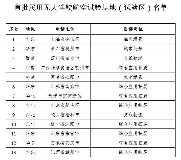 民航局關(guān)于公布首批民用無人駕駛航空試驗(yàn)基地( 試驗(yàn)區(qū)) 的通知民航各地區(qū)管理局,各運(yùn)輸(通用)航空公司,各機(jī)場公司,空管局、運(yùn)行監(jiān)控中心、民航大學(xué)、飛行學(xué)院、管干院、航科院、民航二所、校驗(yàn)中心、信息中心,各協(xié)會:
