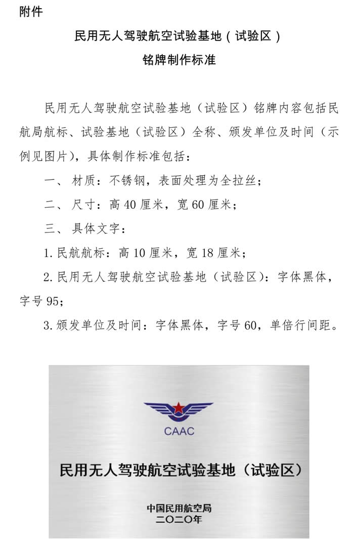請首批民用無人駕駛航空試驗(yàn)基地(試驗(yàn)區(qū))所屬地方政府結(jié)合本地實(shí)際,按照各自目標(biāo)定位,進(jìn)一步加強(qiáng)工作推進(jìn),完善運(yùn)行管理機(jī)制,落實(shí)重點(diǎn)任務(wù),做好試驗(yàn)基地(試驗(yàn)區(qū))建設(shè)和運(yùn)行相關(guān)工作,試出成效、確保安全;并按照統(tǒng)一標(biāo)準(zhǔn)自行制作試驗(yàn)基地(試驗(yàn)區(qū))銘牌(標(biāo)準(zhǔn)見附件2) 。