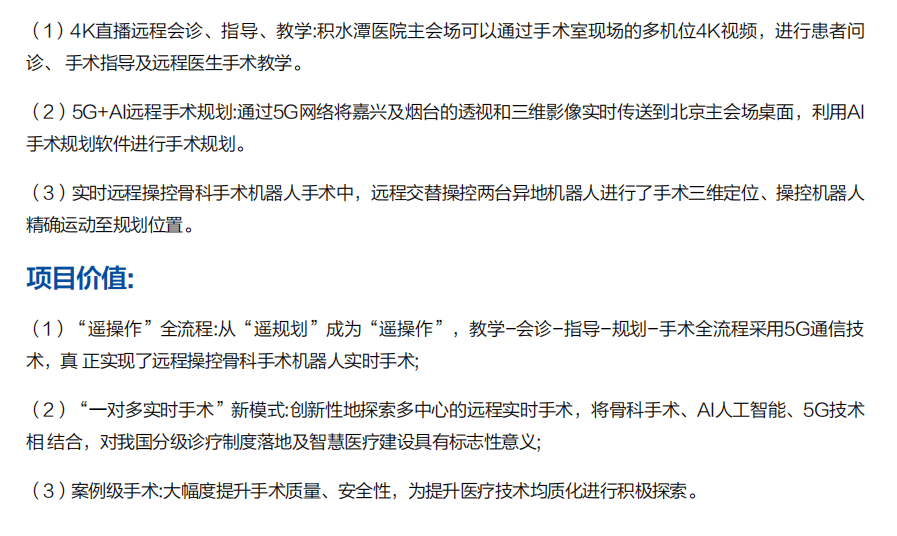 2019年6月27日,北京積水潭醫(yī)院田偉院長在機(jī)器人遠(yuǎn)程手術(shù)中心,通過遠(yuǎn)程系統(tǒng)控制平臺(tái),與嘉興市D二醫(yī)院和煙臺(tái)市煙臺(tái)山醫(yī)院同時(shí)連接,成功完成了首例骨科手術(shù)機(jī)器人多中心5G遠(yuǎn)程手術(shù)。