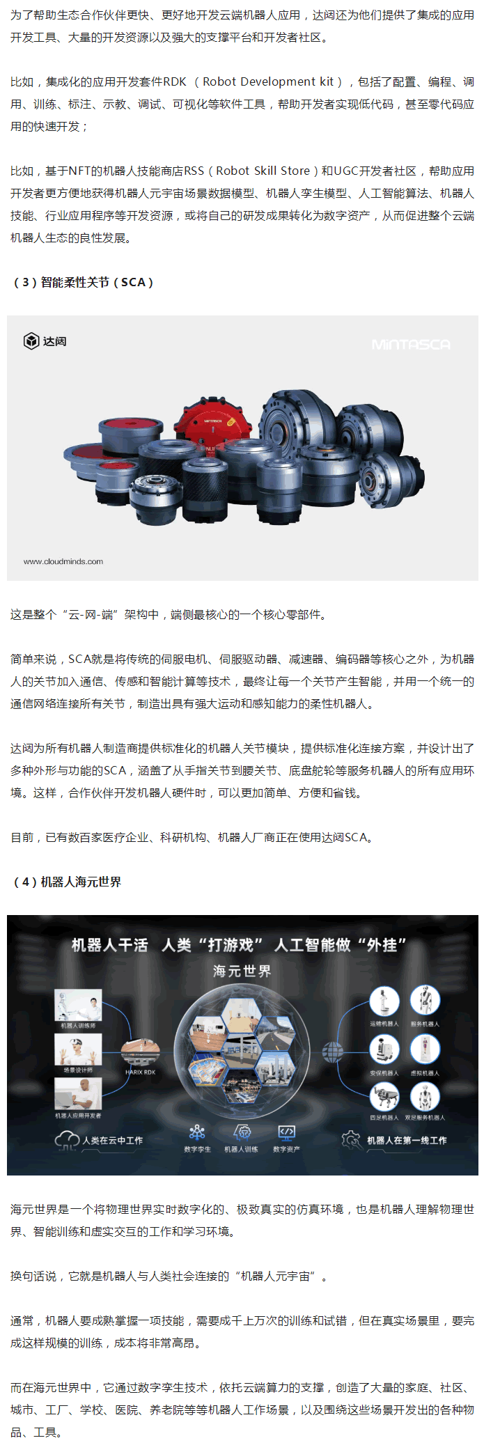 一方面,它通過云、邊、端融合的分布式計算系統(tǒng),充分調(diào)度人工智能算法、算力和大數(shù)據(jù)等運算資源,讓每一臺機器人都能獲得強大的人工智能,滿足不同行業(yè)、不同場景下的各種任務,且不斷進化學習。