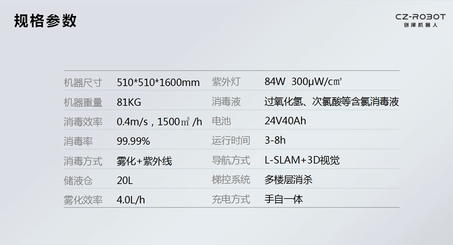 該消毒機(jī)器人可用于大型室內(nèi)空間如體育館、會(huì)展中心、開(kāi)闊大廳、地下車(chē)庫(kù)等室內(nèi)場(chǎng)所,醫(yī)院、社區(qū)、學(xué)校、集中防疫點(diǎn)、道路卡口、車(chē)站、工地等人群密集場(chǎng)所,垃圾集中點(diǎn)等重點(diǎn)場(chǎng)所,還可以應(yīng)用于特殊車(chē)輛等移動(dòng)物體的環(huán)境消殺工作。