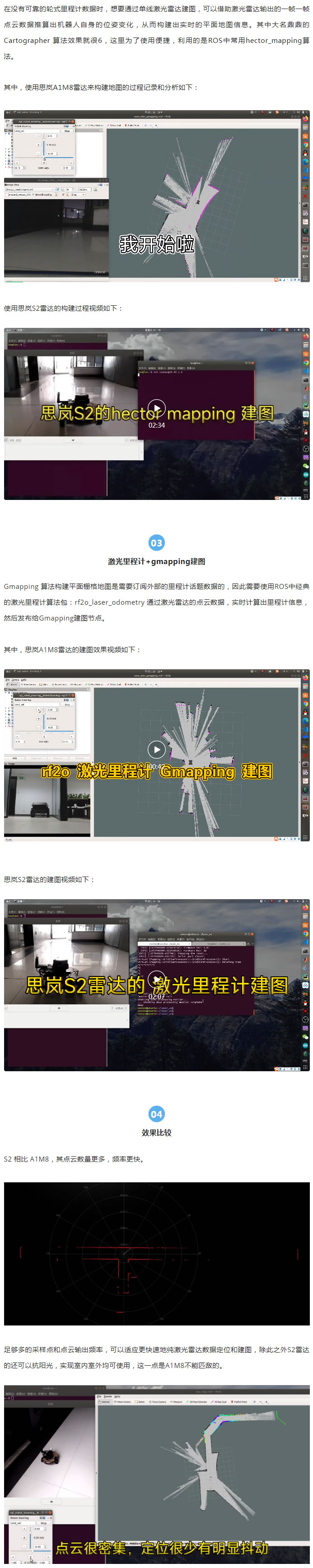 A1M8 雷達(dá)的測(cè)距范圍是 8-12 m,可以滿足居家環(huán)境的室內(nèi)純激光里程計(jì)定位與建圖;但是S2超長(zhǎng)的30m測(cè)距范圍,即使是室內(nèi)的長(zhǎng)走廊,如酒店、宿舍、教學(xué)樓走廊或者是電梯井等場(chǎng)景均可滿足。