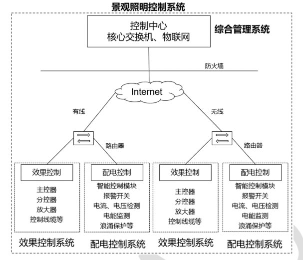 4.1 景觀照明控制系統(tǒng)建設(shè)應(yīng)根據(jù)景觀照明設(shè)計(jì)的照明效果要求、管理功能要求、運(yùn)營維
