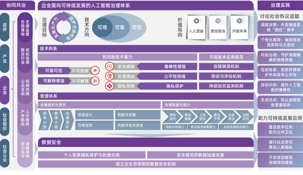 構建面向可持續(xù)發(fā)展的人工智能技術體系,推動人工智能技術可用、可靠、可信,其內涵包括提升技術安全和構建技術管理機制兩個層面工作