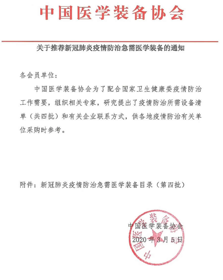 中國醫(yī)學(xué)裝備協(xié)會為了配合國家衛(wèi)生健康委疫情防治工作需要,組織相關(guān)專家,研究提出了疫情防治所需設(shè)備清 單(共四批)和有關(guān)企業(yè)聯(lián)系方式,供各地疫情防治有關(guān)單位采購時參考。